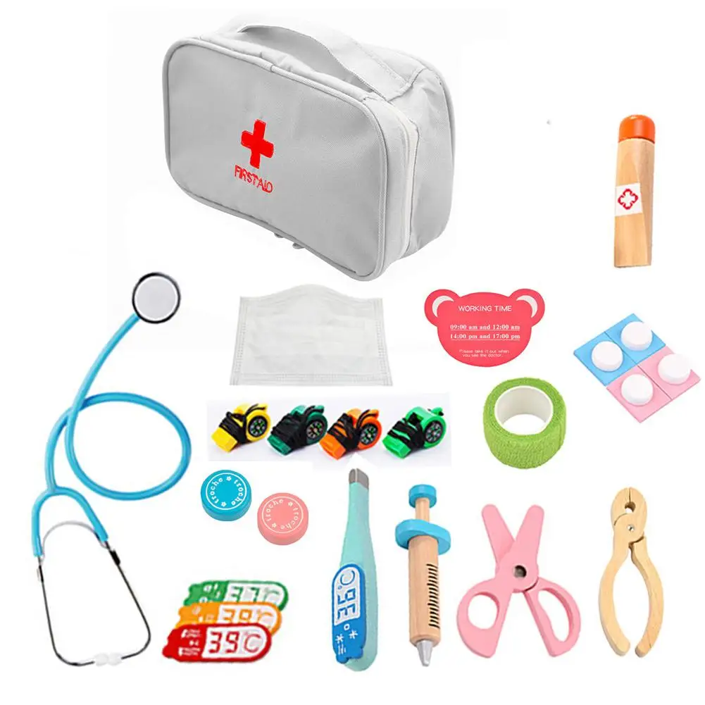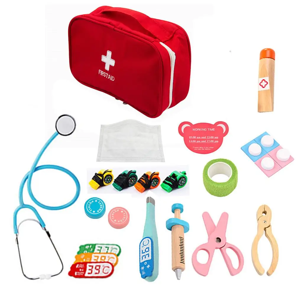 Best Wooden Simulation Doctor Injection Toy First Aid Kit Role Play Kit 15PCS Play Doctor Equipment Set