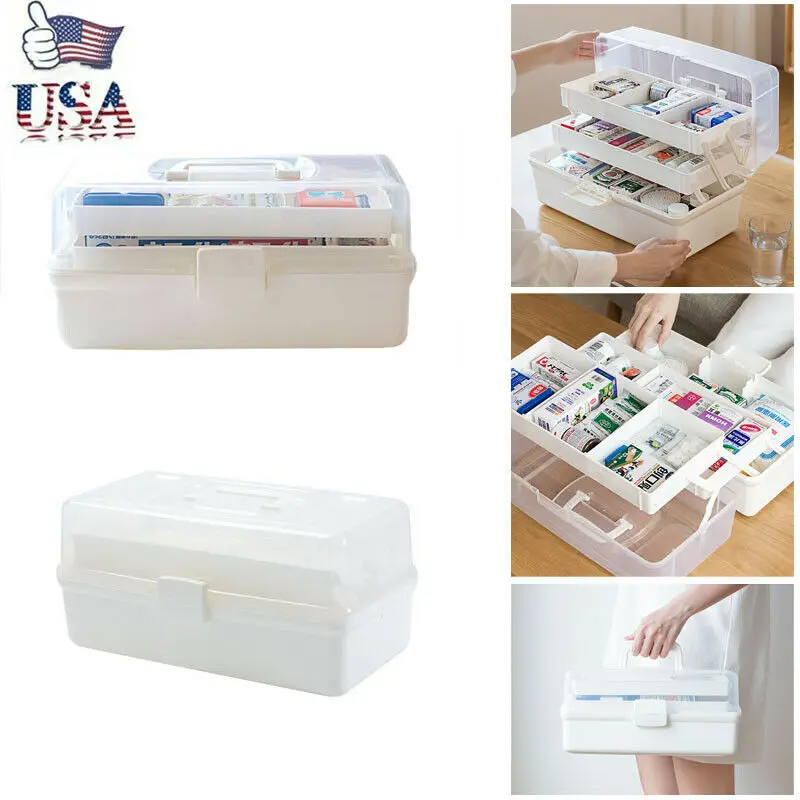 3 Layer Portable Storage Organizer Box Medicine First Aid Kit Handle Health Box